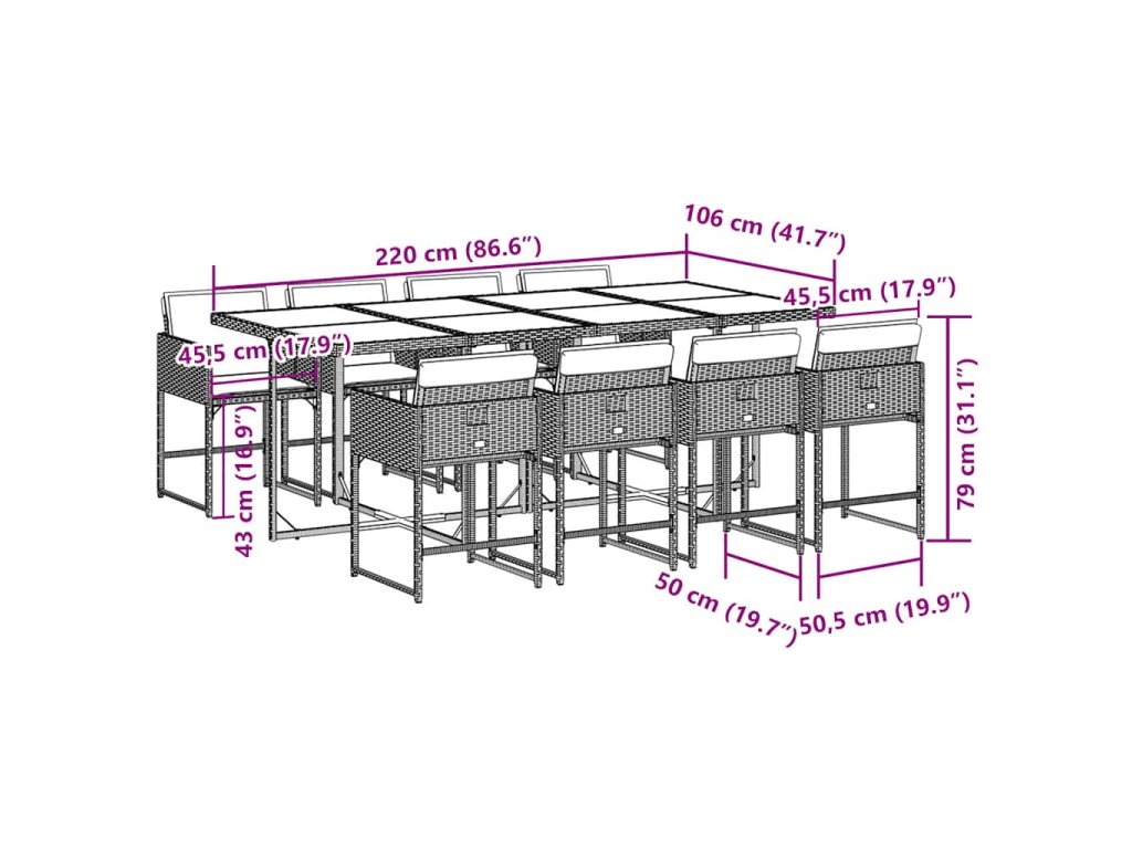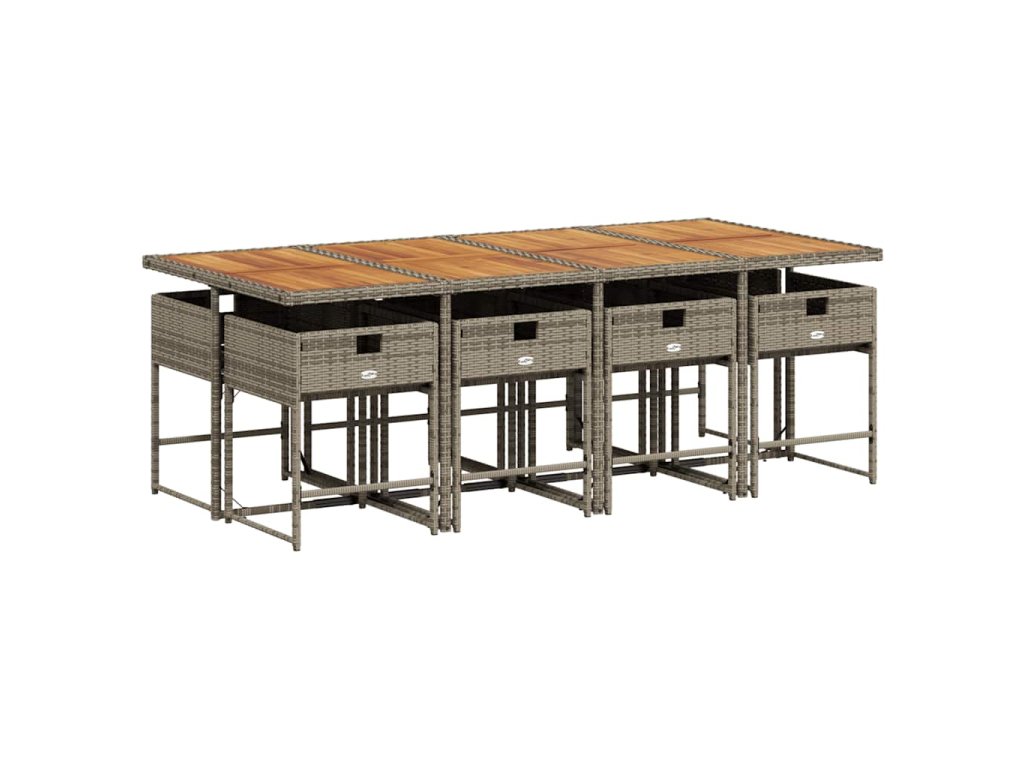 9-dielna záhradná jedálenská sada s podložkami sivá polyratan 3211286