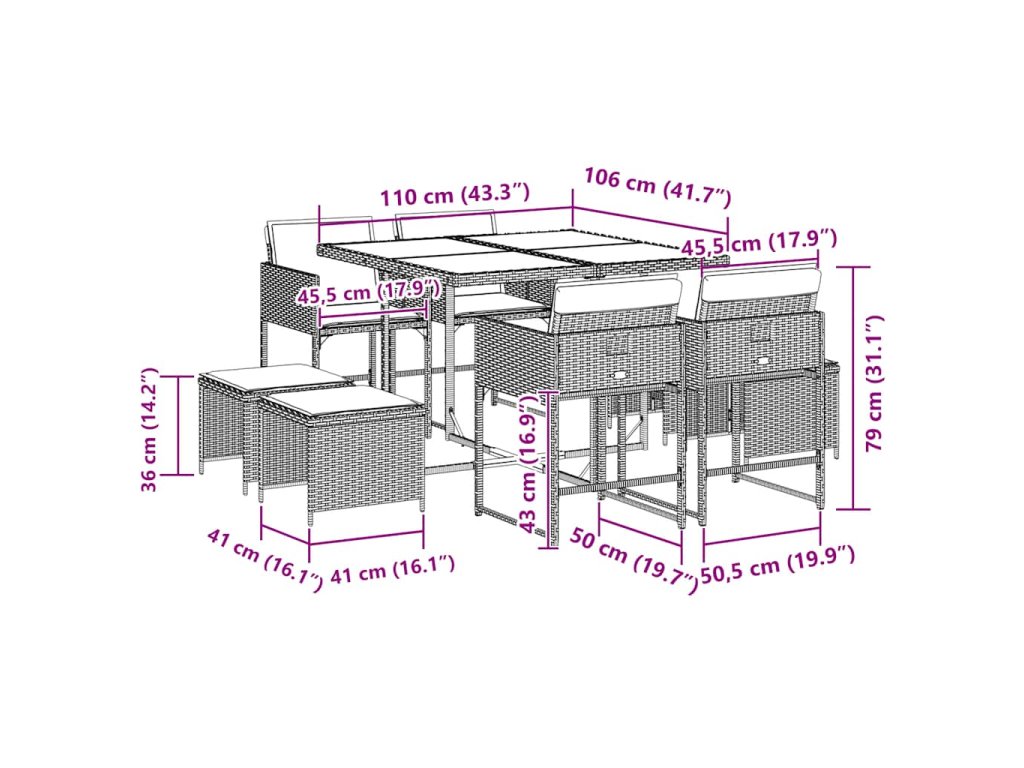 9-dielna záhradná jedálenská sada s podložkami sivá polyratan 3211322