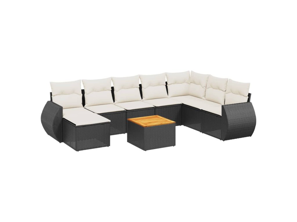 9-dielna záhradná jedálenská sada s vankúšmi čierna polyratan 3225139