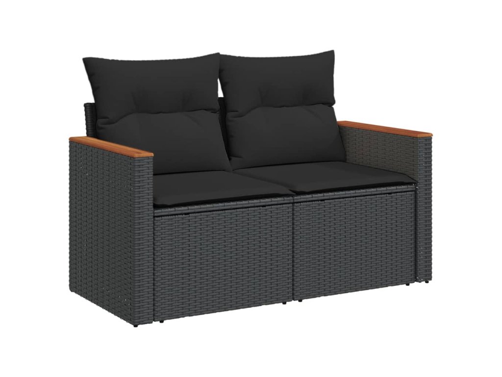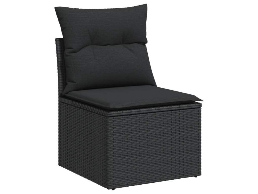9-dielna záhradná jedálenská sada s vankúšmi čierna polyratan 3226538