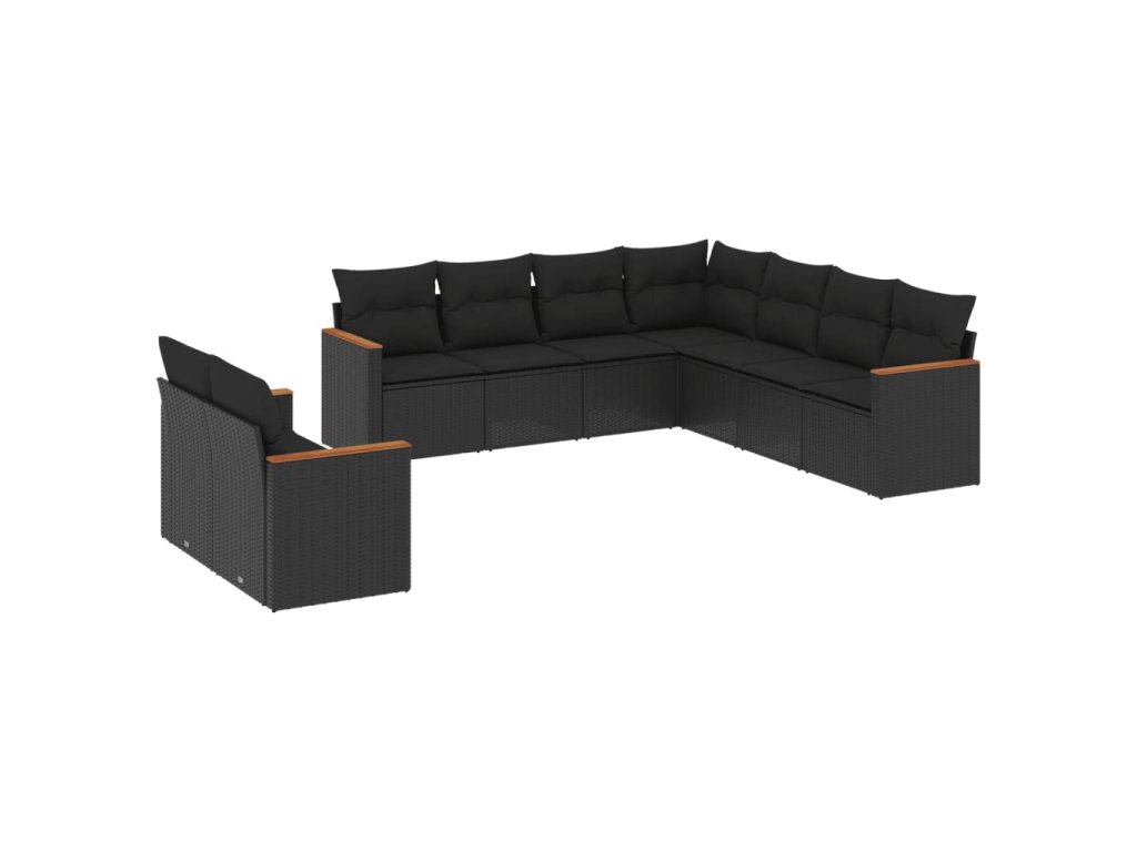 9-dielna záhradná jedálenská sada s vankúšmi čierna polyratan 3258499