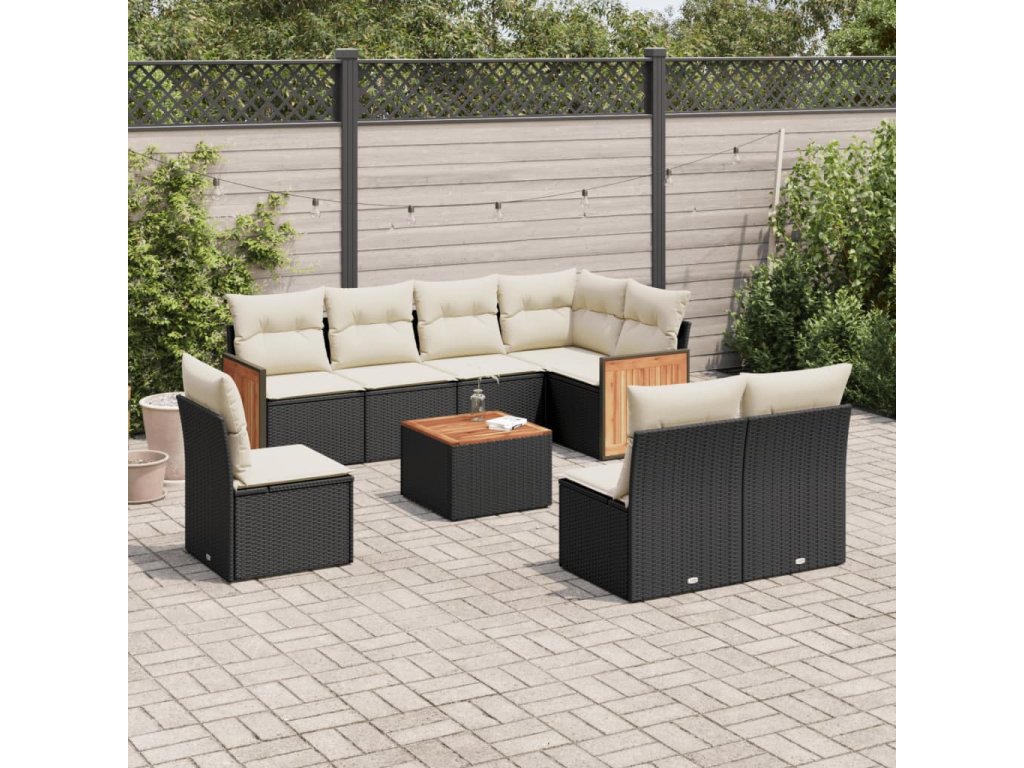 9-dielna záhradná jedálenská sada s vankúšmi čierna polyratan 3260131
