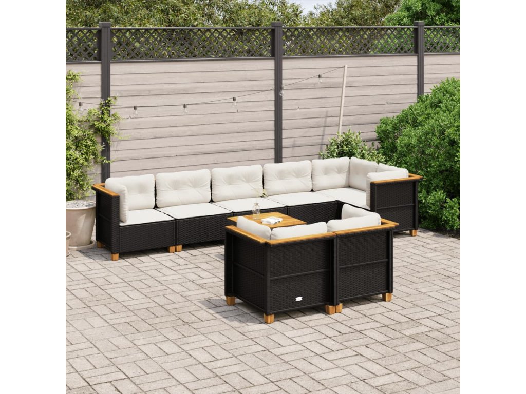 9-dielna záhradná jedálenská sada s vankúšmi čierna polyratan 3261893