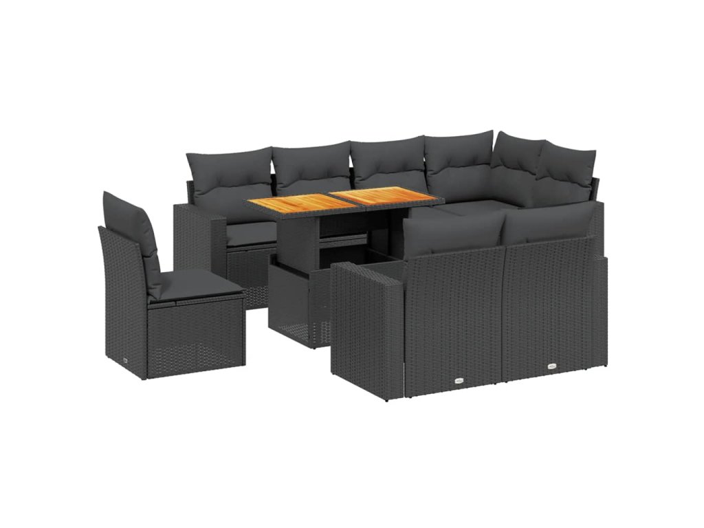 9-dielna záhradná jedálenská sada s vankúšmi čierna polyratan 3271405