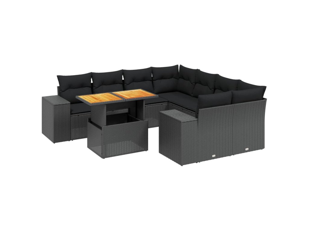9-dielna záhradná jedálenská sada s vankúšmi čierna polyratan 3272560
