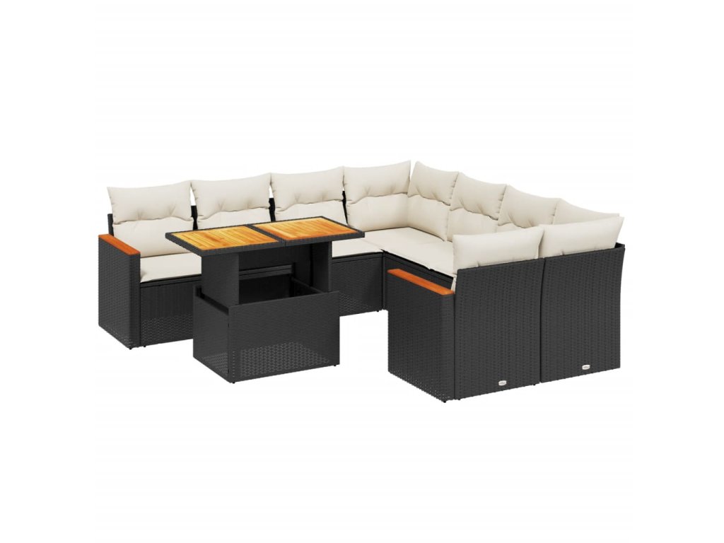 9-dielna záhradná jedálenská sada s vankúšmi čierna polyratan 3273002