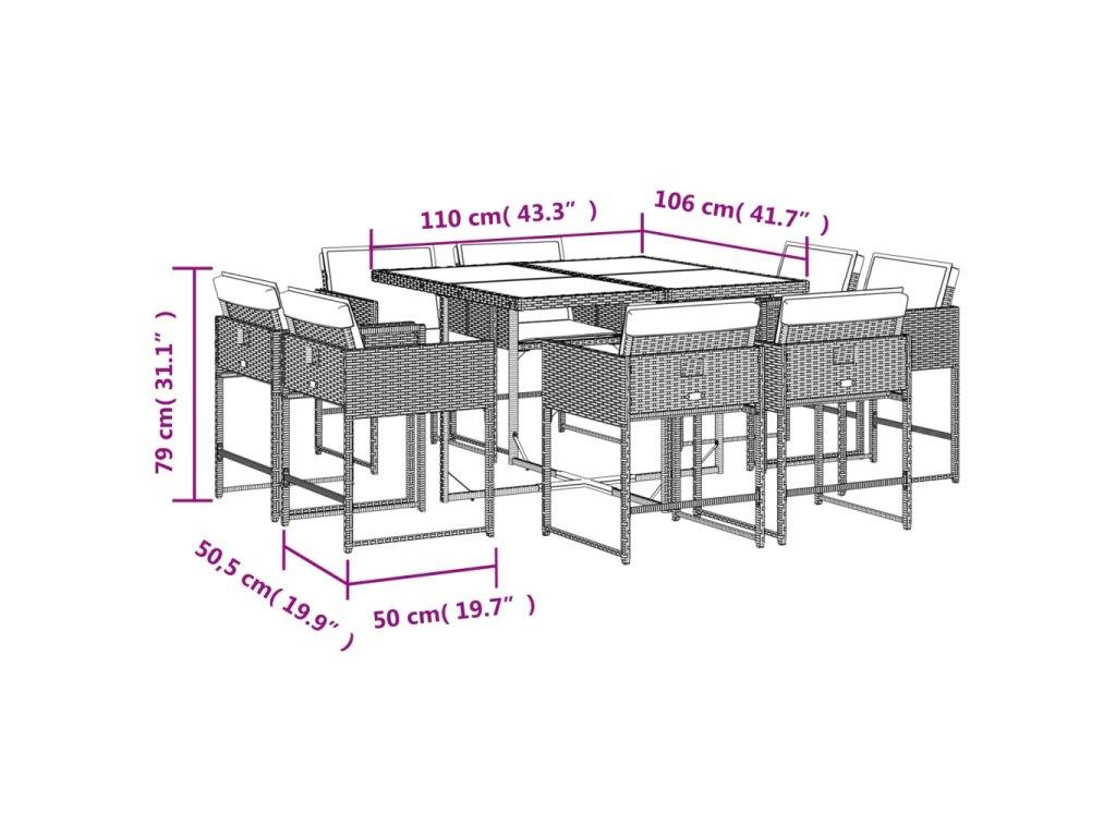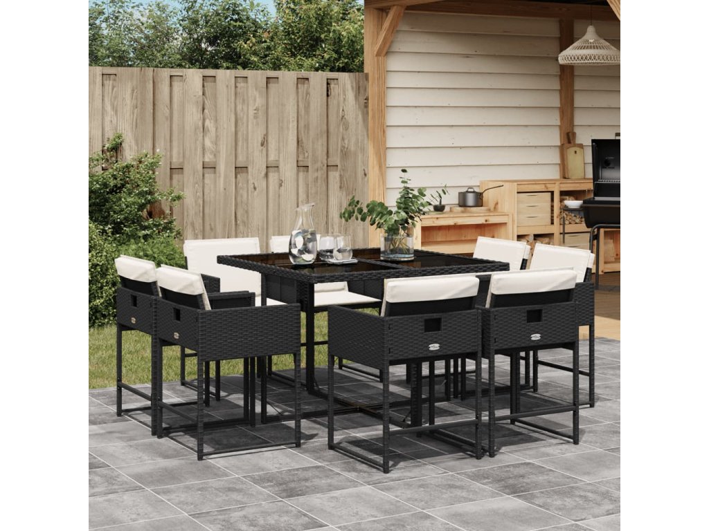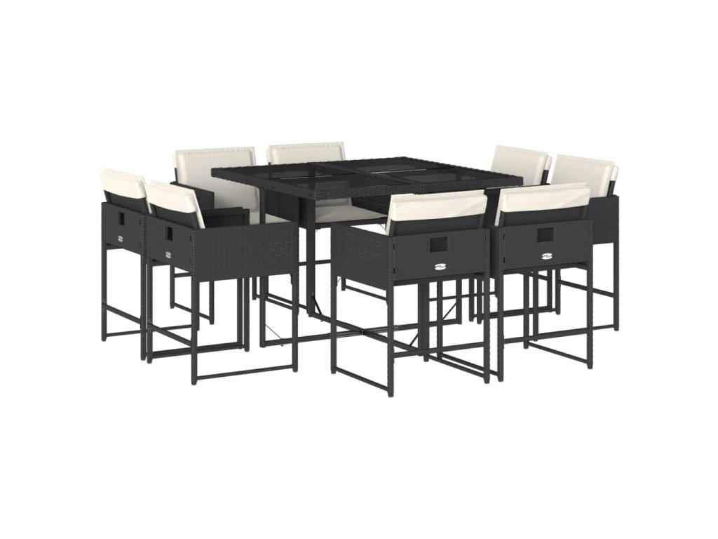 9-dielna záhradná jedálenská sada s vankúšmi čierna polyratan 3278141