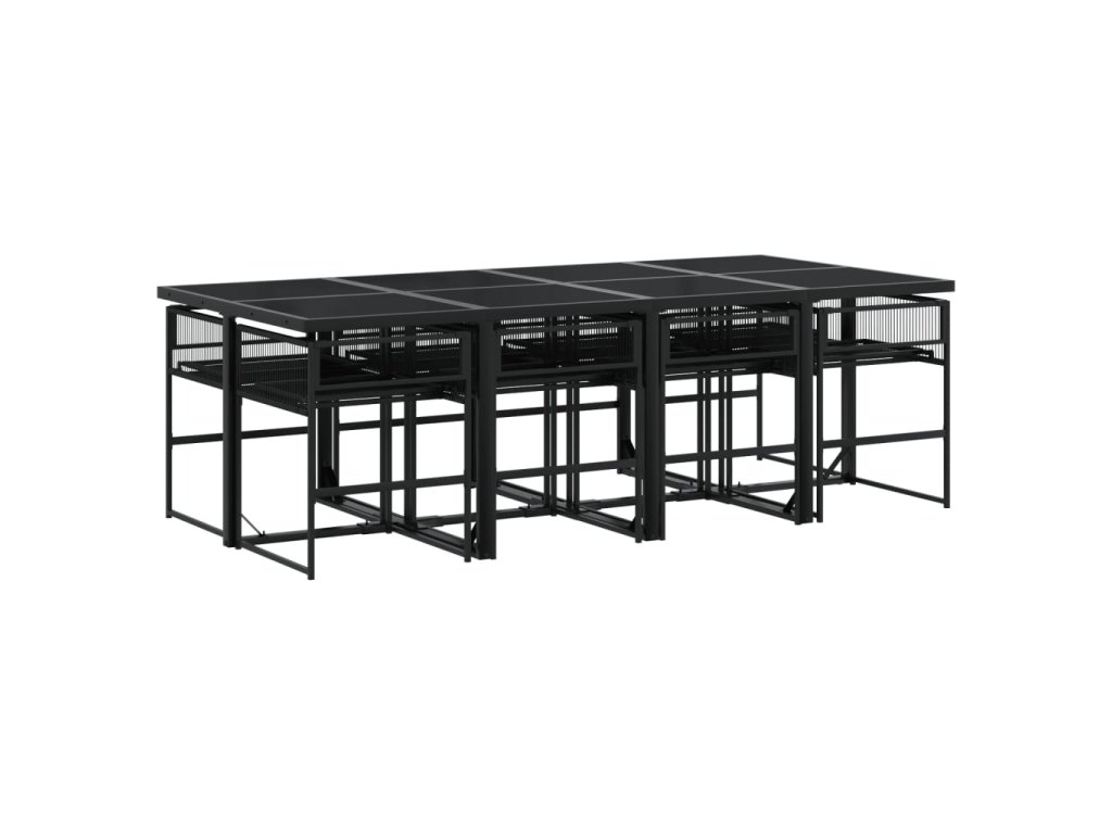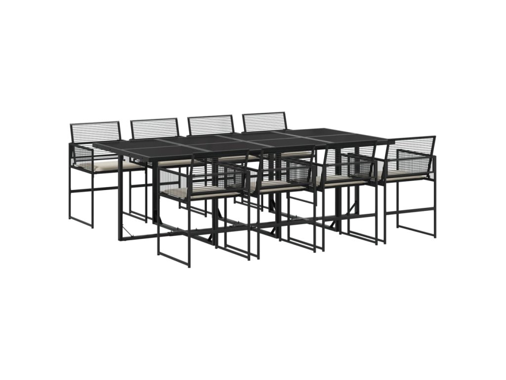9-dielna záhradná jedálenská sada s vankúšmi čierna polyratan 3295010