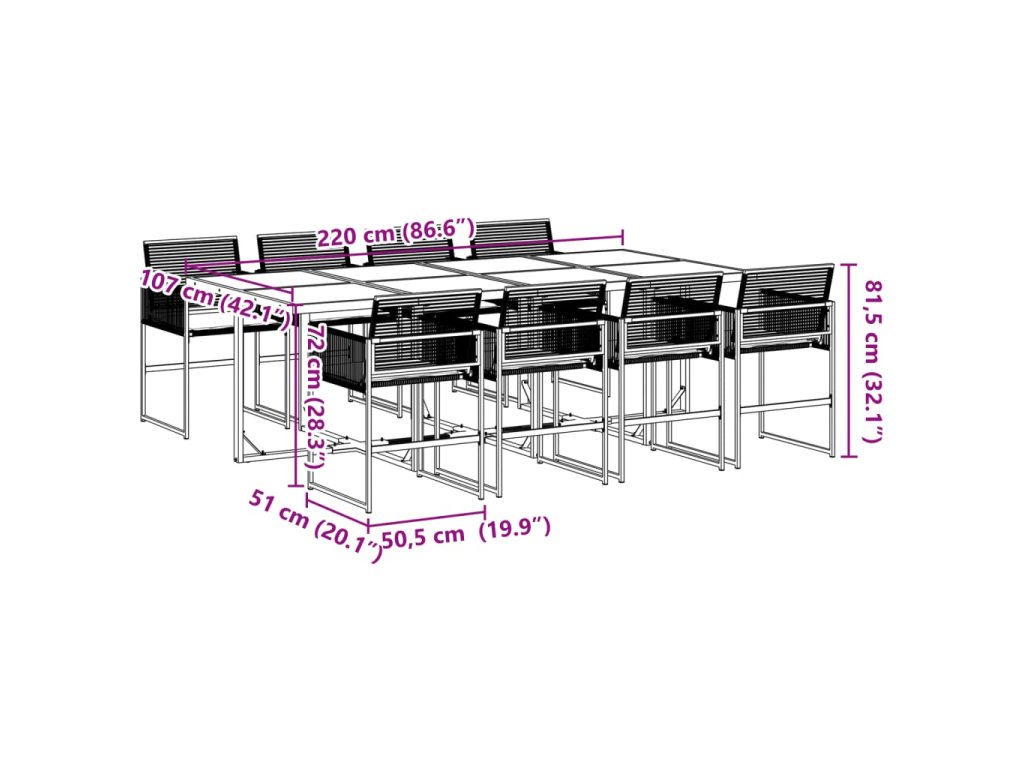 - Robustný a stabilný rám: Oceľový rám s práškovým nástrekom zaisťuje, že záhradný nábytok je pevný a stabilný pre každodenné vonkajšie použitie.