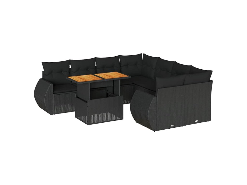 9-dielna záhradná jedálenská sada s vankúšmi čierna polyratan 3327240