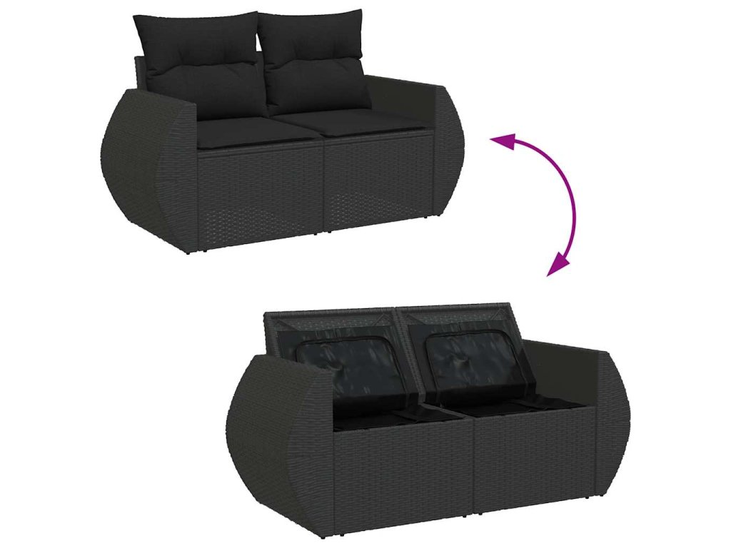 - Úložná funkcia s vodeodolnou taškou: Záhradný nábytok má úložný priestor pod sedadlom, doplnený o vodeodolnú tašku na uloženie vankúšov, hračiek a iných predmetov. Vnútorné vrecko sa dá bezpečne pripevniť k vonkajšiemu nábytku pomocou zapínania na suchý zips pre lepšiu stabilitu.