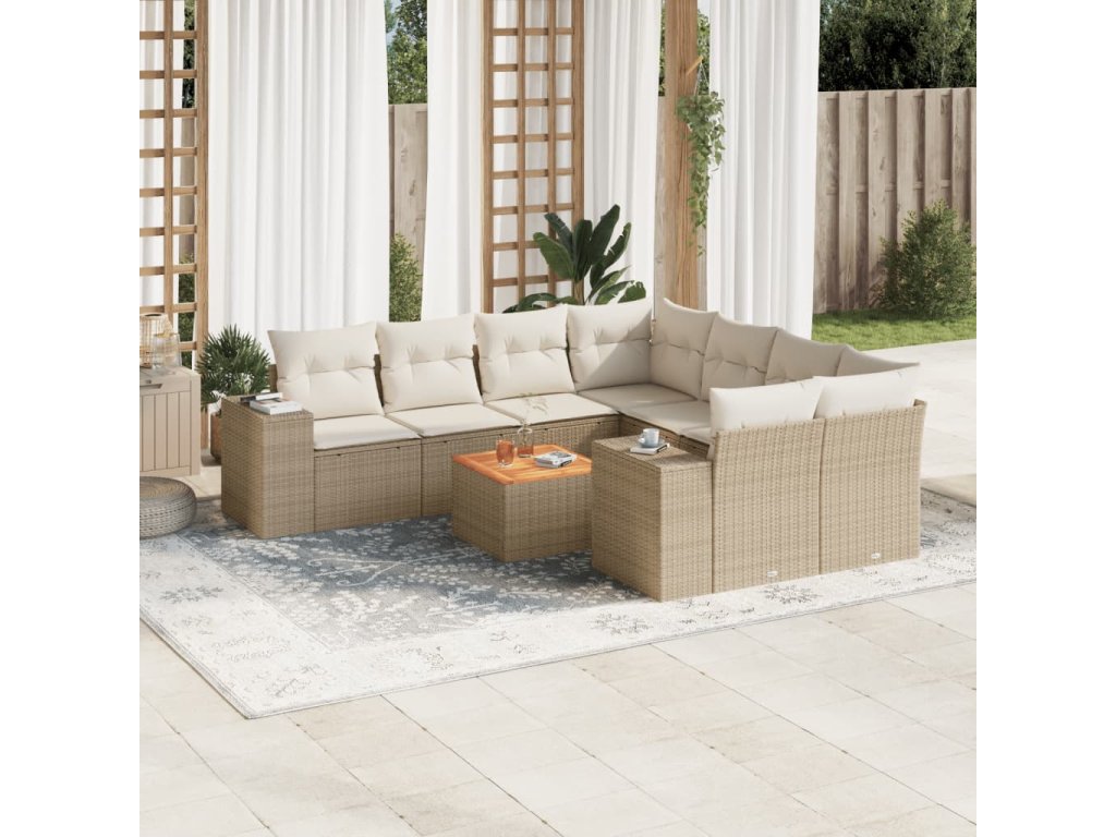 9-dielna záhradná súprava pohoviek s vankúšmi béžová polyratan 3257703