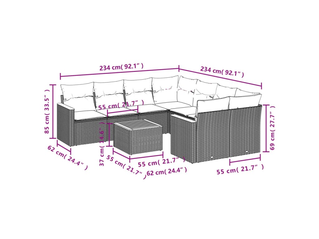 9-dielna záhradná súprava pohoviek s vankúšmi béžová polyratan 3258230