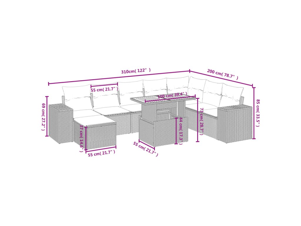 9-dielna záhradná súprava pohoviek s vankúšmi béžová polyratan 3275964