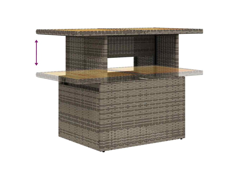 - Materiál: PE ratan, práškovaná oceľ, masívne akáciové drevo s olejovým náterom