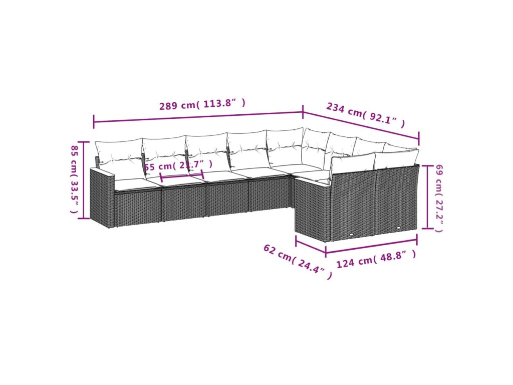 9-dielna záhradná súprava pohoviek s vankúšmi sivá polyratanová 3226305