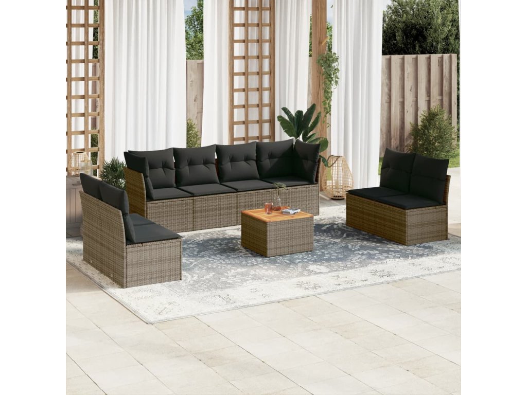 9-dielna záhradná súprava pohoviek s vankúšmi sivá polyratanová 3255913