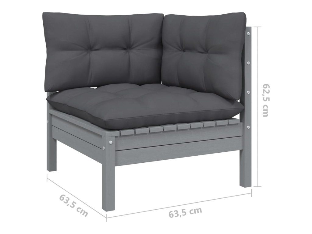9-dielny záhradný set s antracitovými vankúšmi borovicové drevo 3096066