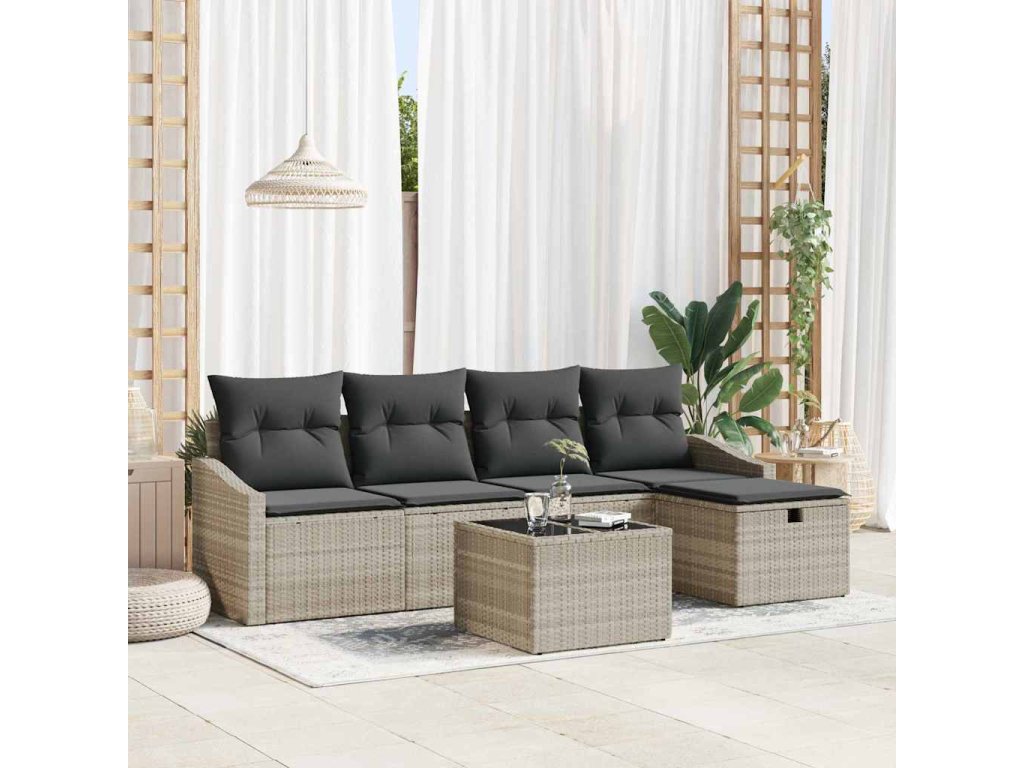Sada pohoviek s vankúšom s úložiskom Svetlosivá polyratan 3359271
