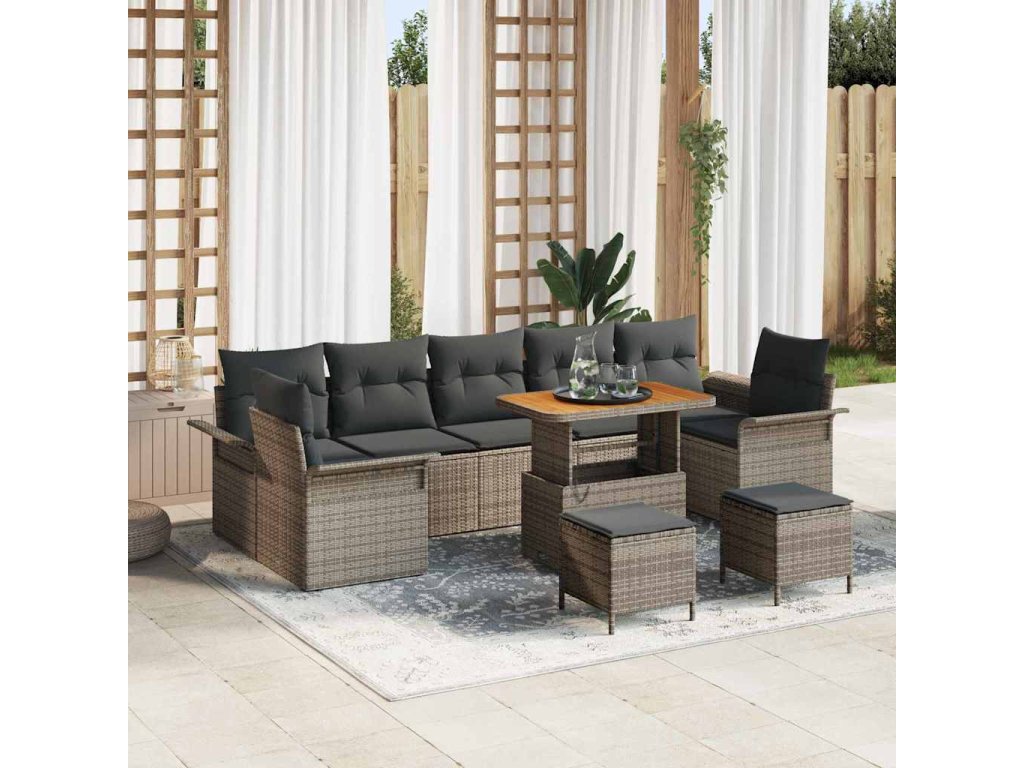 Tento moderný záhradný pohovkový set je elegantným a praktickým doplnkom pre každý vonkajší priestor. S čistými líniami a minimálnym zdobením sa skvele hodí do akejkoľvek záhrady alebo na terasu. Je ideálny, ak chcete zabaviť hostí alebo si len tak oddýchnuť. Tento modulárny set si môžete prispôsobiť podľa seba a jeho poly ratan a akáciové drevo zabezpečujú krásny vzhľad aj dlhú životnosť.
