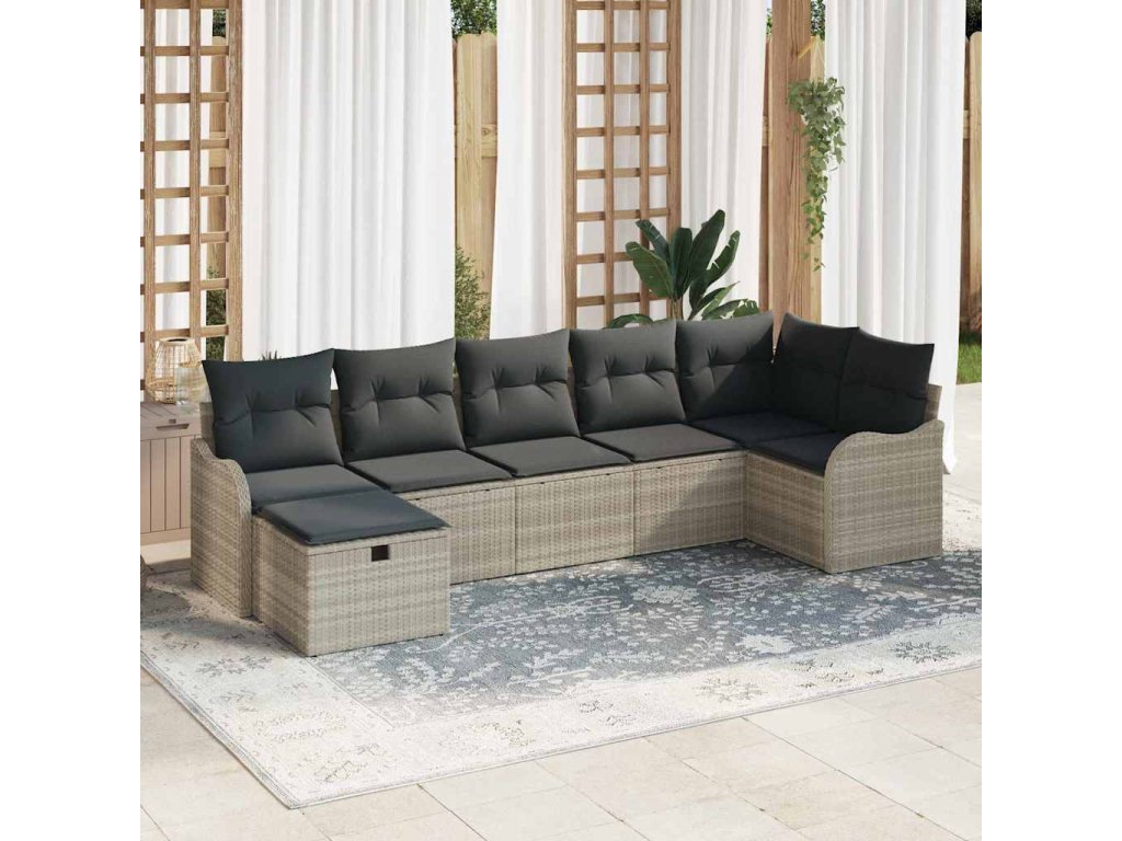 Súprava záhradných pohoviek 7 pcs Svetlosivá Poly ratan 3360333
