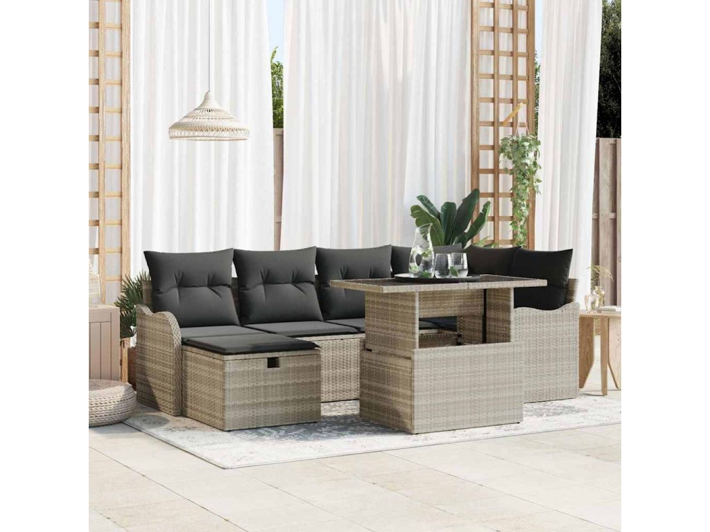 Súprava záhradných pohoviek 7 pcs Svetlosivá Poly ratan 3361051