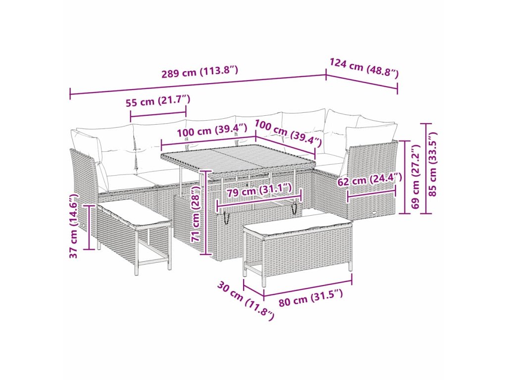 Súprava záhradných pohoviek 9 pcs Béžová polyratan 3361497
