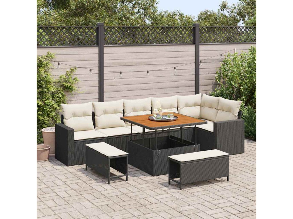 Súprava záhradných pohoviek 9 pcs Čierna polyratan 3361625