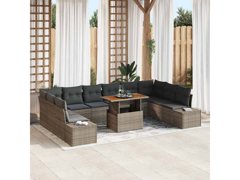 Súprava záhradných pohoviek s úložiskom 11 pcs Sivá Poly ratan 3358750