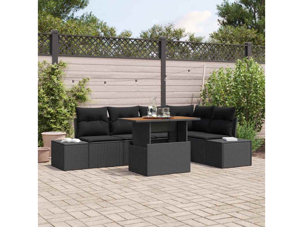 Súprava záhradných pohoviek s úložiskom 6 pcs Čierna Poly ratan 3358704
