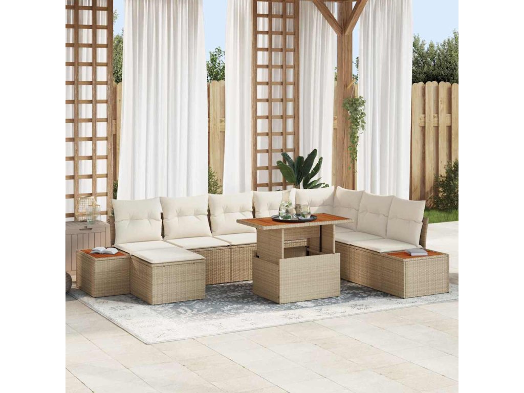 Súprava záhradných pohoviek s úložiskom 9 pcs Béžová Poly ratan 3358835