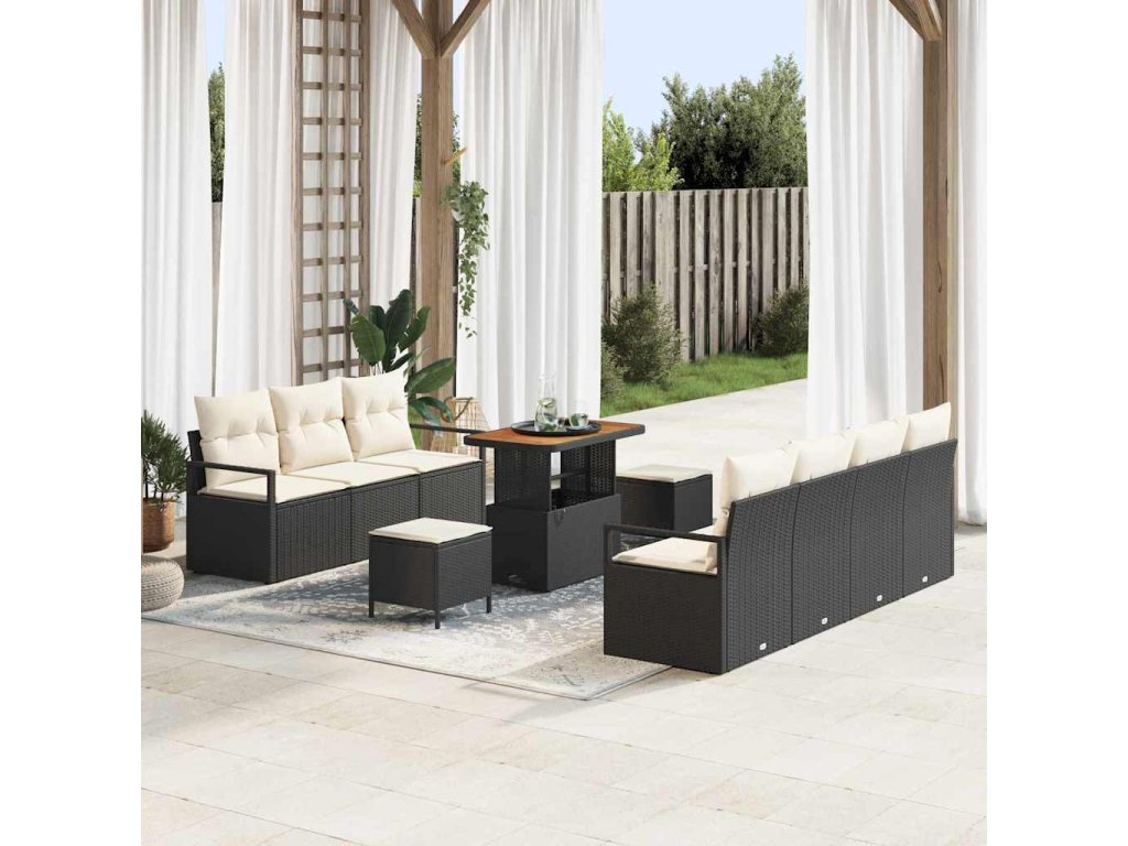 Súprava záhradných pohoviek s vankúšom 10 pcs Čierna Poly ratan 3362490