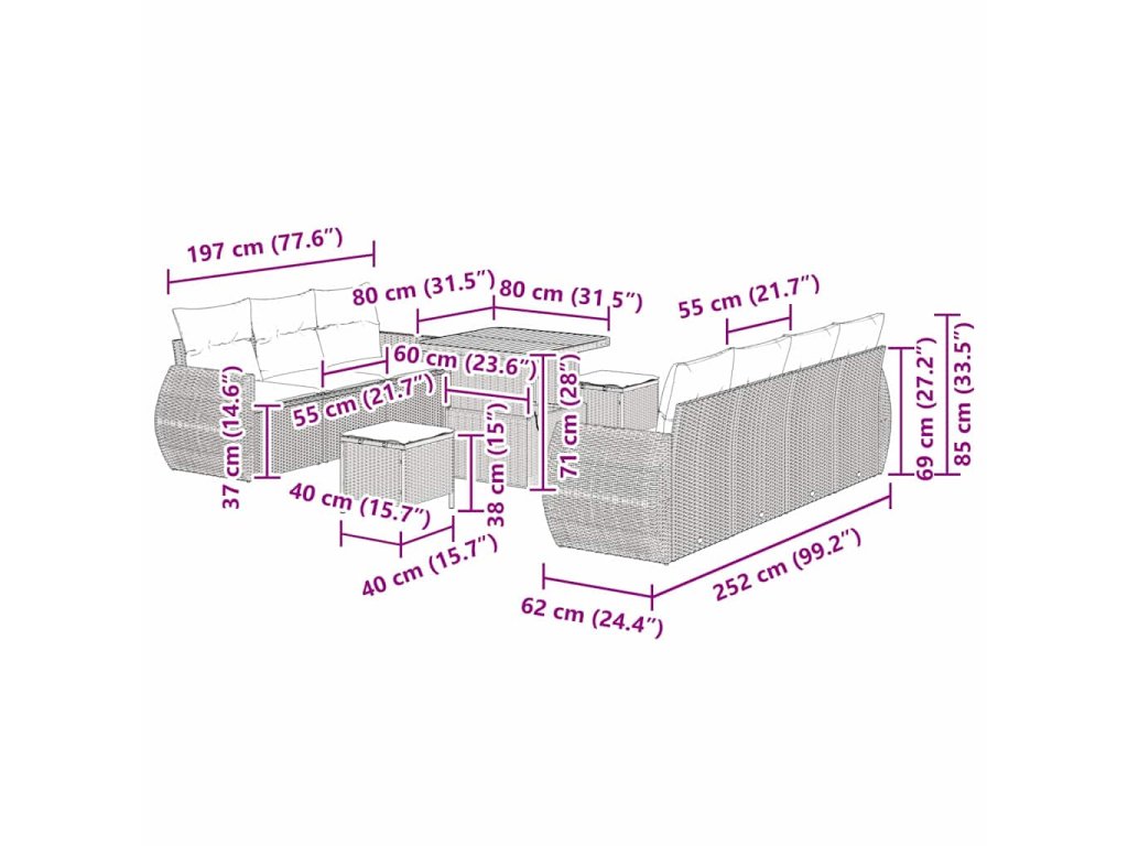 Súprava záhradných pohoviek s vankúšom 10 pcs Čierna polyratan 3361835
