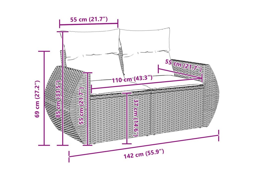 - Materiály: Sedačka má prémiovú kombináciu polyratanu a masívneho akáciového dreva, čo zaručuje štýl aj odolnosť. Polyratan odoláva poveternostným vplyvom, zatiaľ čo akácia dodáva nádych prírody.
