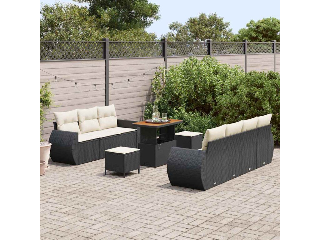 Súprava záhradných pohoviek s vankúšom 10 pcs Čierna polyratan 3361840