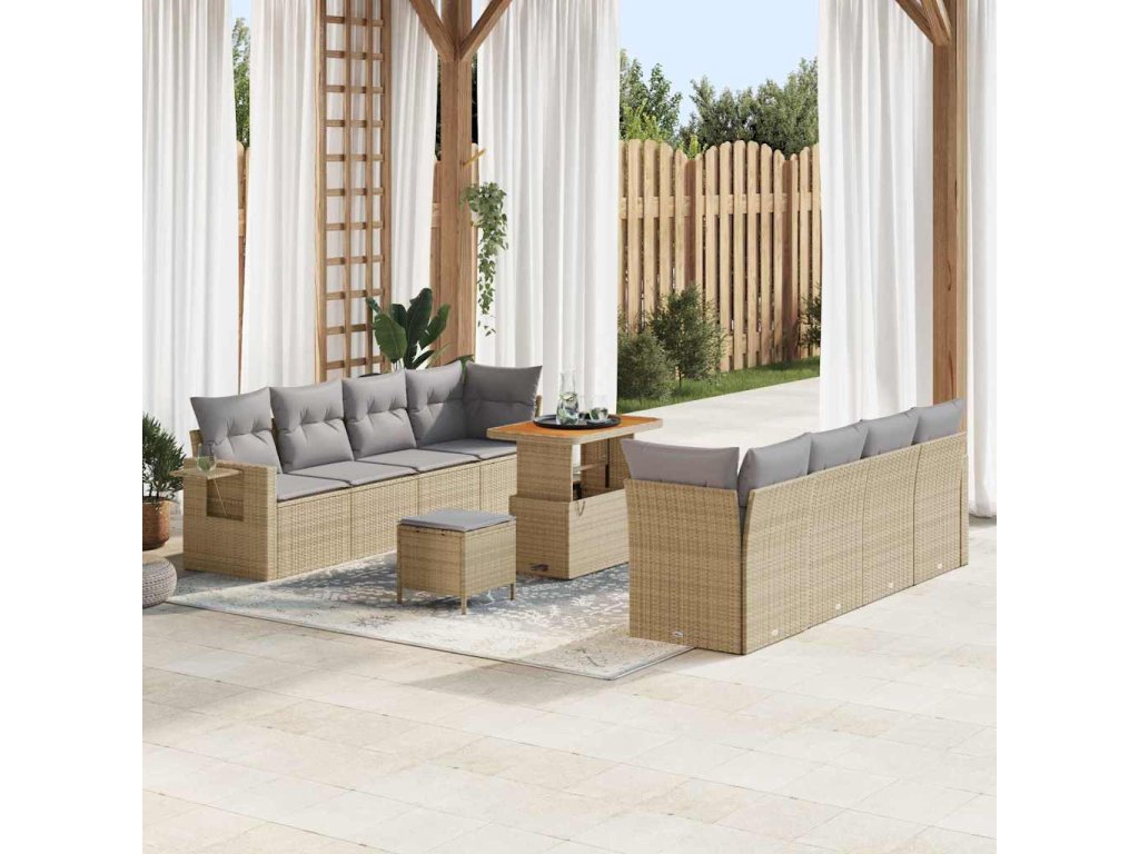 Súprava záhradných pohoviek s vankúšom 11 pcs Béžová Poly ratan 3361722