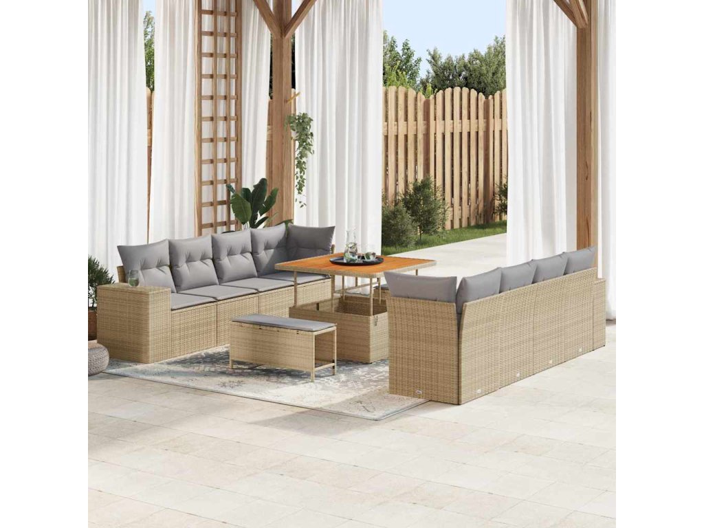Súprava záhradných pohoviek s vankúšom 11 pcs Béžová polyratan 3361987