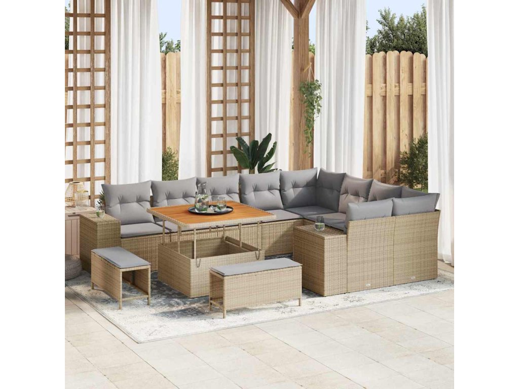 Súprava záhradných pohoviek s vankúšom 12 pcs Béžová polyratan 3362037