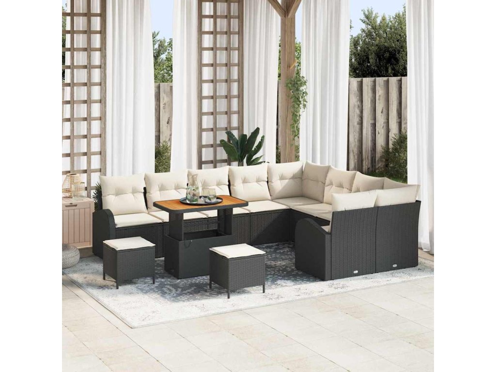 Súprava záhradných pohoviek s vankúšom 12 pcs Čierna Poly ratan 3362435