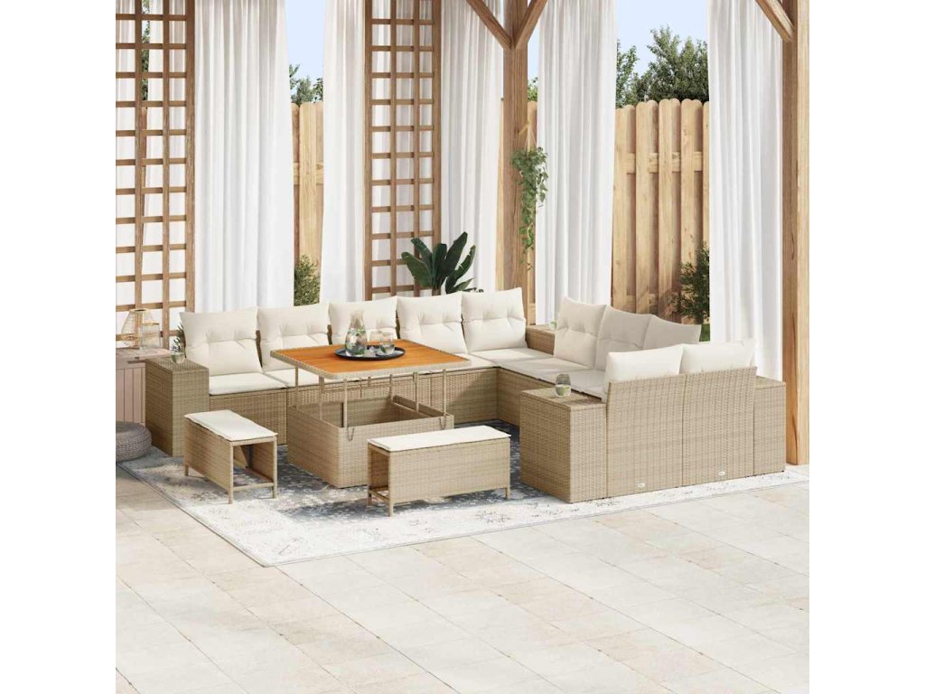 Súprava záhradných pohoviek s vankúšom 13 pcs Béžová polyratan 3362056