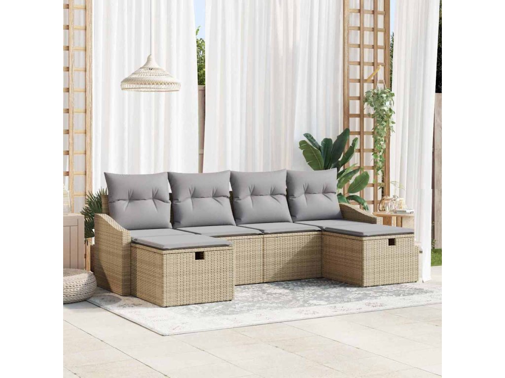 Súprava záhradných pohoviek s vankúšom 6 pcs Béžová Poly ratan 3359319