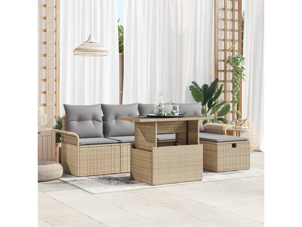 Súprava záhradných pohoviek s vankúšom 6 pcs Béžová Poly ratan 3359667
