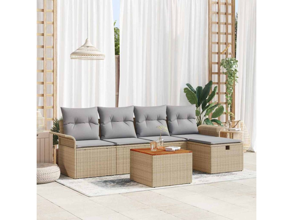 Súprava záhradných pohoviek s vankúšom 6 pcs Béžová Poly ratan 3360780