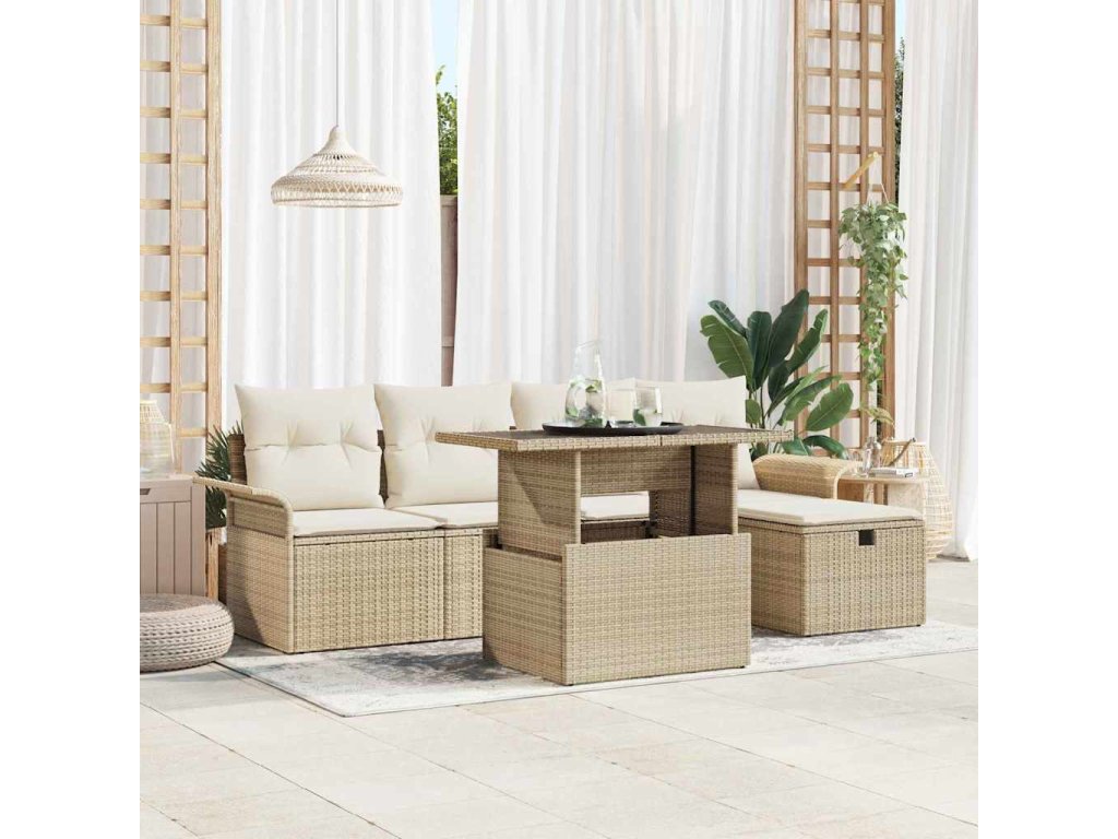 Súprava záhradných pohoviek s vankúšom 6 pcs Béžová Poly ratan 3361000