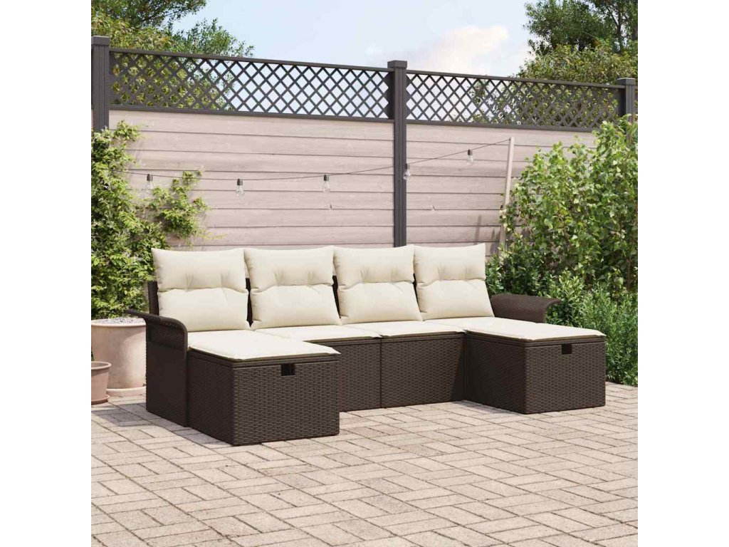 Súprava záhradných pohoviek s vankúšom 6 pcs Hnedá Poly ratan 3360249