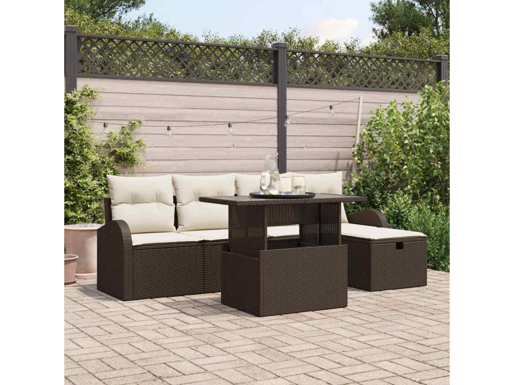 Súprava záhradných pohoviek s vankúšom 6 pcs Hnedá Poly ratan 3361077