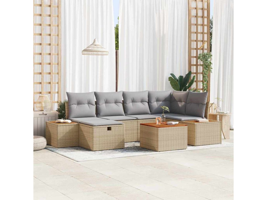 Súprava záhradných pohoviek s vankúšom 7 pcs Béžová polyratan 3359637