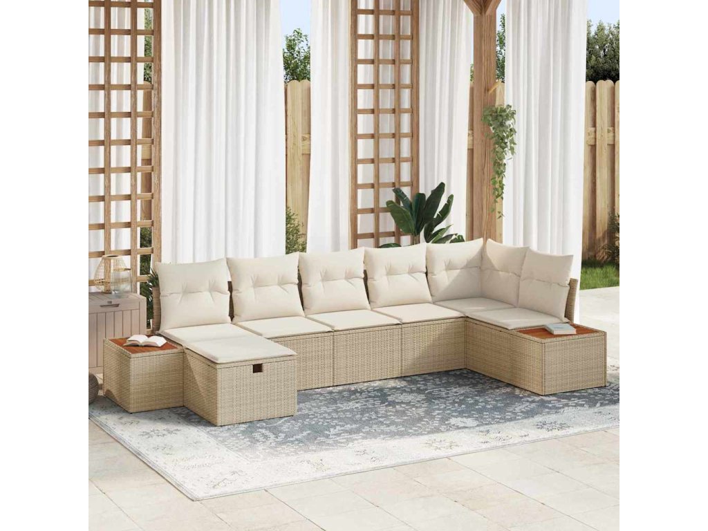 Súprava záhradných pohoviek s vankúšom 7 pcs Béžová polyratan 3359643