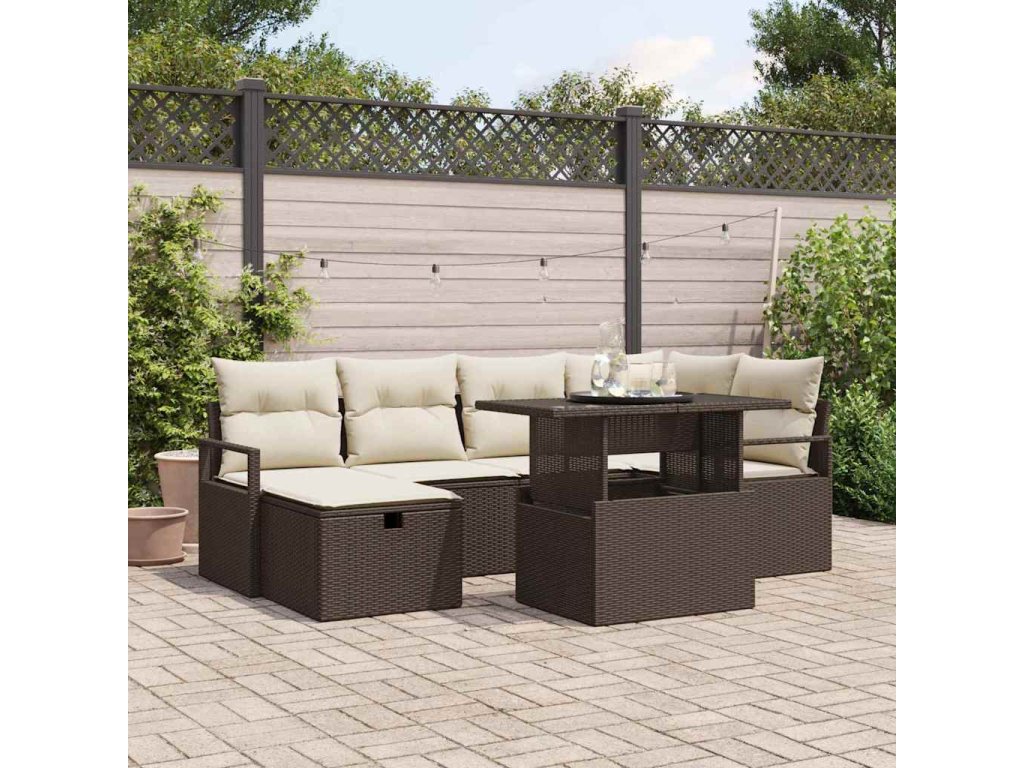 Súprava záhradných pohoviek s vankúšom 7 pcs Hnedá Poly ratan 3359795