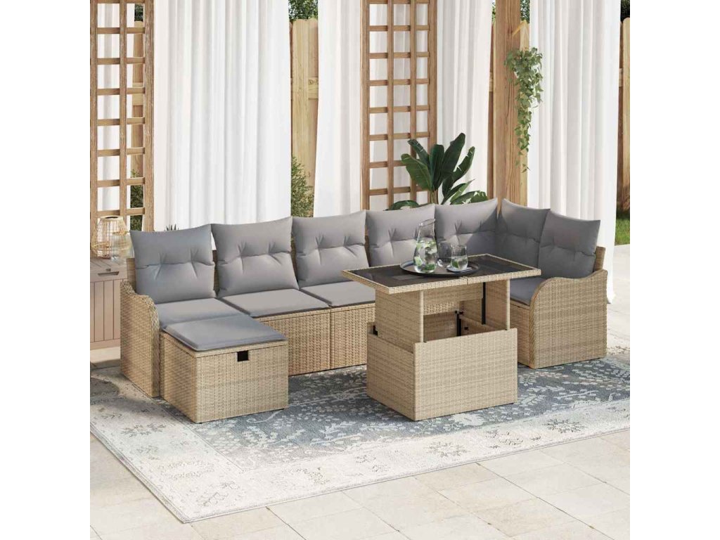 Súprava záhradných pohoviek s vankúšom 8 pcs Béžová Poly ratan 3359727